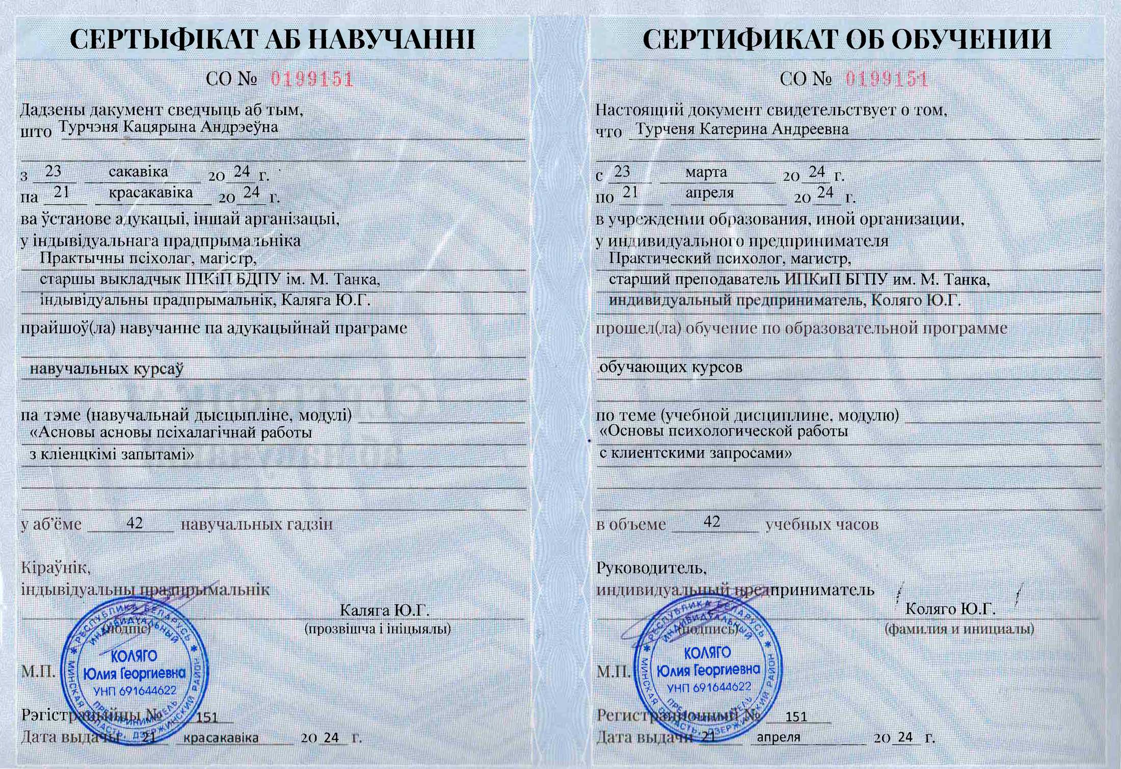 Индивидуальный предприниматель Турченя Екатерина Андреевна